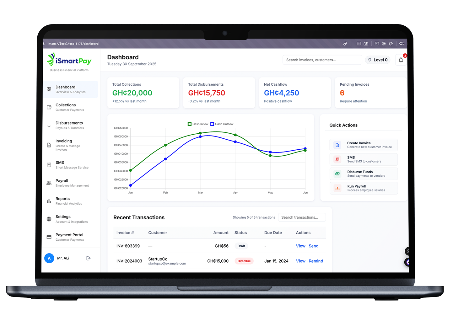 Managing payments shouldn’t slow your business down. With iSmartPay, you can send invoices, automate payment reminders, track transactions in real time, and reconcile accounts easily all from one simple dashboard. This means less time spent on manual paperwork and more time focused on growing your business.